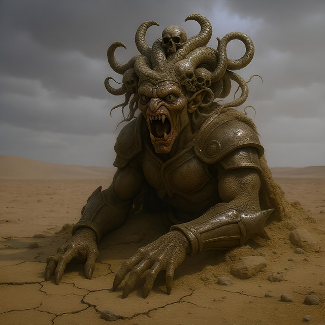 #corrupted #dalle3 #desert #fantasy #fantasyart #fantasycharacter #fantasycreature #mummified #mummy #skeleton #snake #undead #aigeneratedart