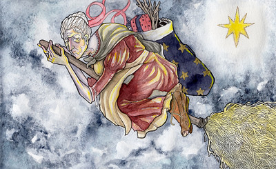 Media: Watercolours, Markers, Gold Paint, Ink