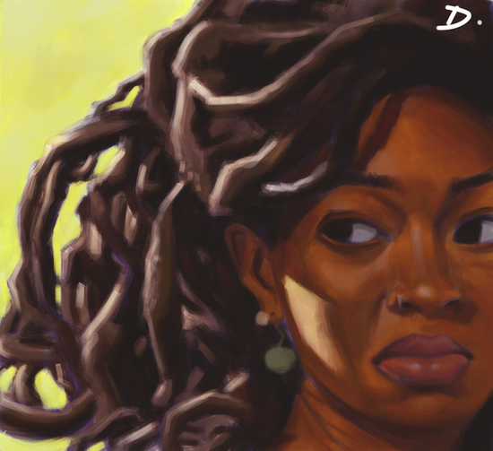 You are REALLY great with colour. I love how this isn't all super-smooth airbrushed like most paintings- you see all these perfectly rendered portraits all the time with a gradual, even gradation of tone, but they don't even come close to the vibrancy of the colouring you've done on this. Its so clear that even with a lazy, splotchy way of (digi?)painting, you show perfect understanding of colour, texture and tone.