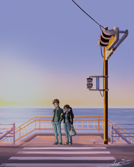 This has such a nice tone to it! I can really feel the mood of the characters when looking at this piece. The buildings are also very nicely done.