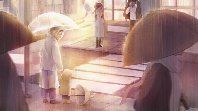 Beautiful artwork, but the story between the two people seems so sad I feel sorry for the girl in the rain.