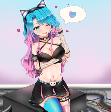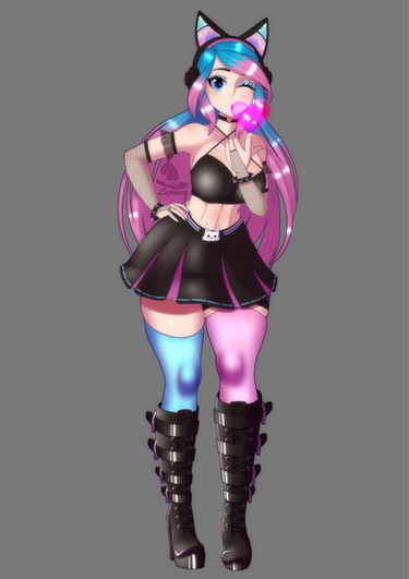 #catears #kneehighboots #miniskirt #multicoloredhair #pinkandblue #purple #sultry #thighhighs #animemangagirl #silvervale #ara_ara #lewdfanart #vtuberfanart