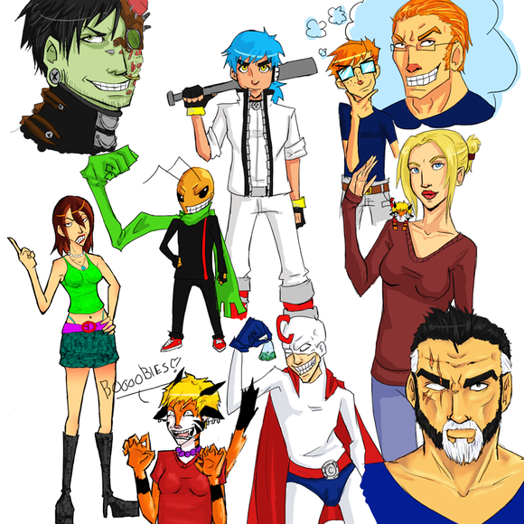 Mostly I just make random sketches of stick figures until I get one I really like then go from there~ (In this case I first doodled Rex then added the others for a BG XD)