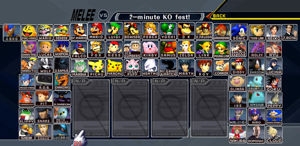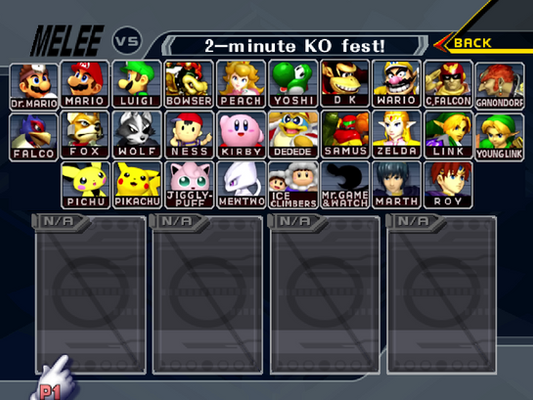 Link for the screenshot with the original character roster in “Super Smash Bros. Melee” for the GameCube: imgbb.com/sy08g1V