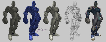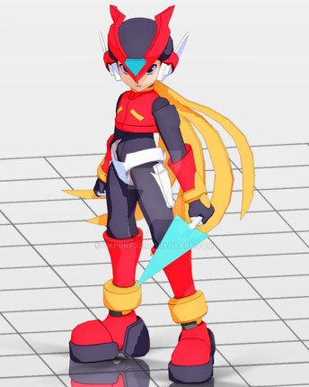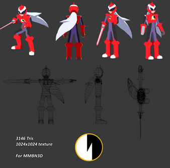 Zero, from Mega Man Zero. He has some awesome turnarounds online, so I bet lots of fans model him.Zero is 1990 triangles, and the Z-Saber is 66 triangles.