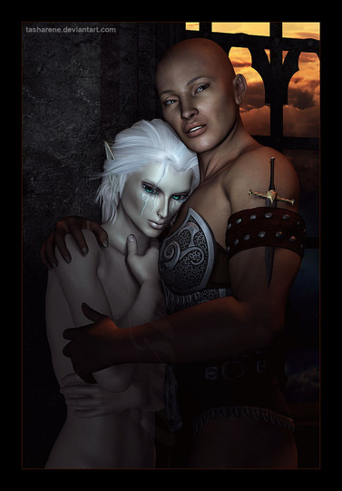 "Stay awhile, morsel." murmured the pale man. Clad in the figure of a young high elf who could have been no more than 17 years old, (though he was much older), his deceptively frail arms clung tighter around the night elf maiden. He buried his face into her verdant hair and inhaled deeply, his dulled senses still able to pick up her delicious scent. The smell of blood was always intoxicating to him, but in her...in her it was more so. Much, much more.A sanguine lust stirred within his soul, and with anguish he kept his restraint, only to snarl softly as his fangs were bared. What was it that he found so desirable about his enemy's daughter? Well this one, he mentally corrected, not her twin the Warden bitch. This one: the fair, gentle mage with whom his attention could not stray. She was so much like her mother, and yet so different. Where the mother saw an abomination in him, the daughter saw his true soul. And she loved it.