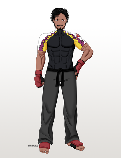 #anime #malecharacter #characterdesign #digitalart #fighter #originalcharacter #bandage #characterconcept #commission #dice #oc #referencesheet #original_character #facial_hair
