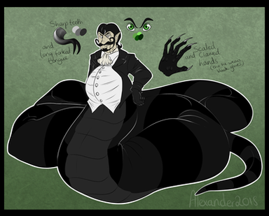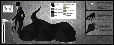Don't have much of a story for him yet so for now, but he speaks with a lisp (like Plague does) and he has an English accent of course. :3 He used to be for sale at a pet store but he escaped (again, unsure if I'm keeping this) and he is very long. In fact, he's bigger than the average human. :3c Oh and of course he's chubby as heck and likes to coil around things and sleep in trees
