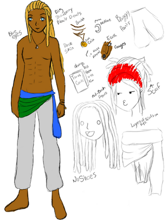 Element Use: Xeth's uses his was scepter to control sand like a waterbender might use their hands to control the current of the water. In the desert, where he is at home, he moves the sand like waves, causing it to splash into buildings or people, grating against everything it touches, wearing it down. When traveling he keeps a bag of sand about his waist for when he becomes too weak to summon sand on his own.