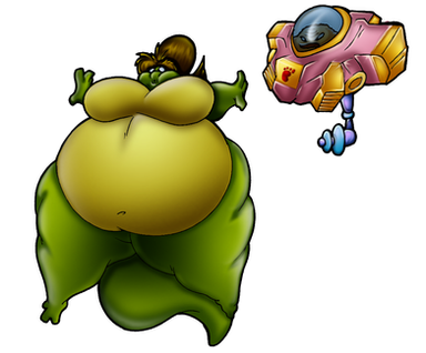 I did the drawings for something!The 'something' is a fine tale of earthbound gluttony and weight gain starring a lovely alien lady, written by and Wowee, and featurin' 20 drawings by me. The illustrated tale comes in both a black-and-white version featuring my original art, as well as a version wherein all the pics are colored by the writers. This dazzling cover, meanwhile, was drawn by me and colored by the magnificent , BUT TO REPEAT, the colored versions of the pics inside the tale itself were not colored by Silent Vincent, but by the writers. Just to be clear, so that nobody feels the bitter sting of an unintentional bait-and-switch. That bitter, bitter sting.