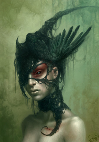 What a very interesting picture. The character herself, that has to be one of the most unique things I've ever saw. I love the detailing on the feathers and that omnivorous background looks breathtaking. Just awesome job!