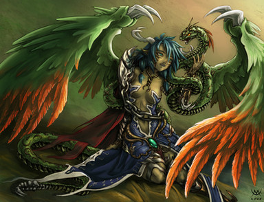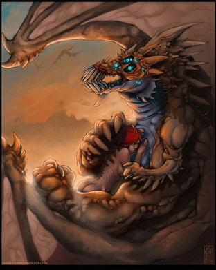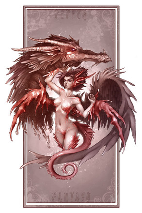 Awsome piece. I like your take on the half-dragon, and the warm color sheme really makes this picture pop. Well done