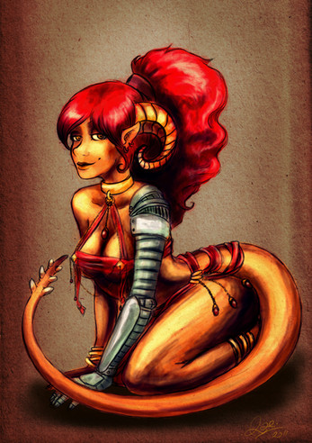 It's amazing! The details are really well drawn, and I love how the scales blend with the rest of her skin; they're distinctive, but don't look out of place on her.