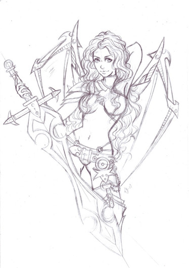 Very good. Nice, crisp lineart, and the face is very well done. Cool pose too. Her waist could possibly be just a little bit thinner to accentuate her figure a little more, but aside from that this is an extremely well done piece. Keep it up, God bless!