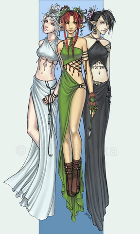 *__* This is awesome! I love the minimalistic look to this! I also love the artistic liberty you took to each of their outifts and hair ^__^. Their faces are all very pretty, and I love how you drew their hair. It's awesome how you gave Iris a unicorn horn!!! Yeah, I love that one clubbing pic by artgerm too XD. Thanks for the b-day pic! August babies unite!!!!