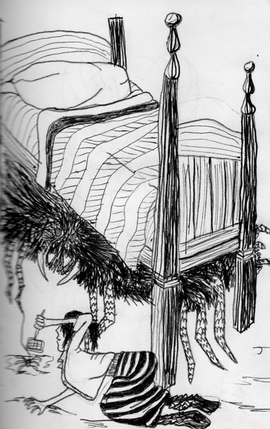 Here is another piece from Zavalnia. This illustrates a story of a woman, who has taken a cat to her house and then started seeing nightmares alive.Well, sometimes cats are evil creatures...especially the moset beautiful ones