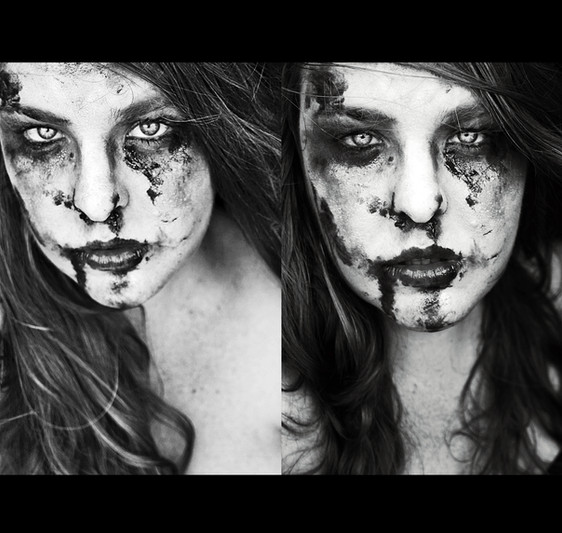 with my own tweaking and a layer blend of the two to get the desaturated look...