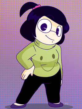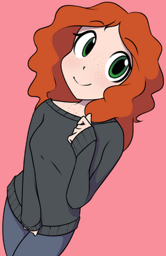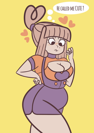 Looks quite cute. I like how you drew her hair, her thighs, and her facial expression.