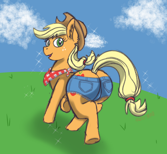 Applejack showing off her shapely apple bottom.Related content