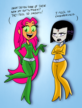This one is very sexy that both Starfire and Raven are both wear hot looking leotards.