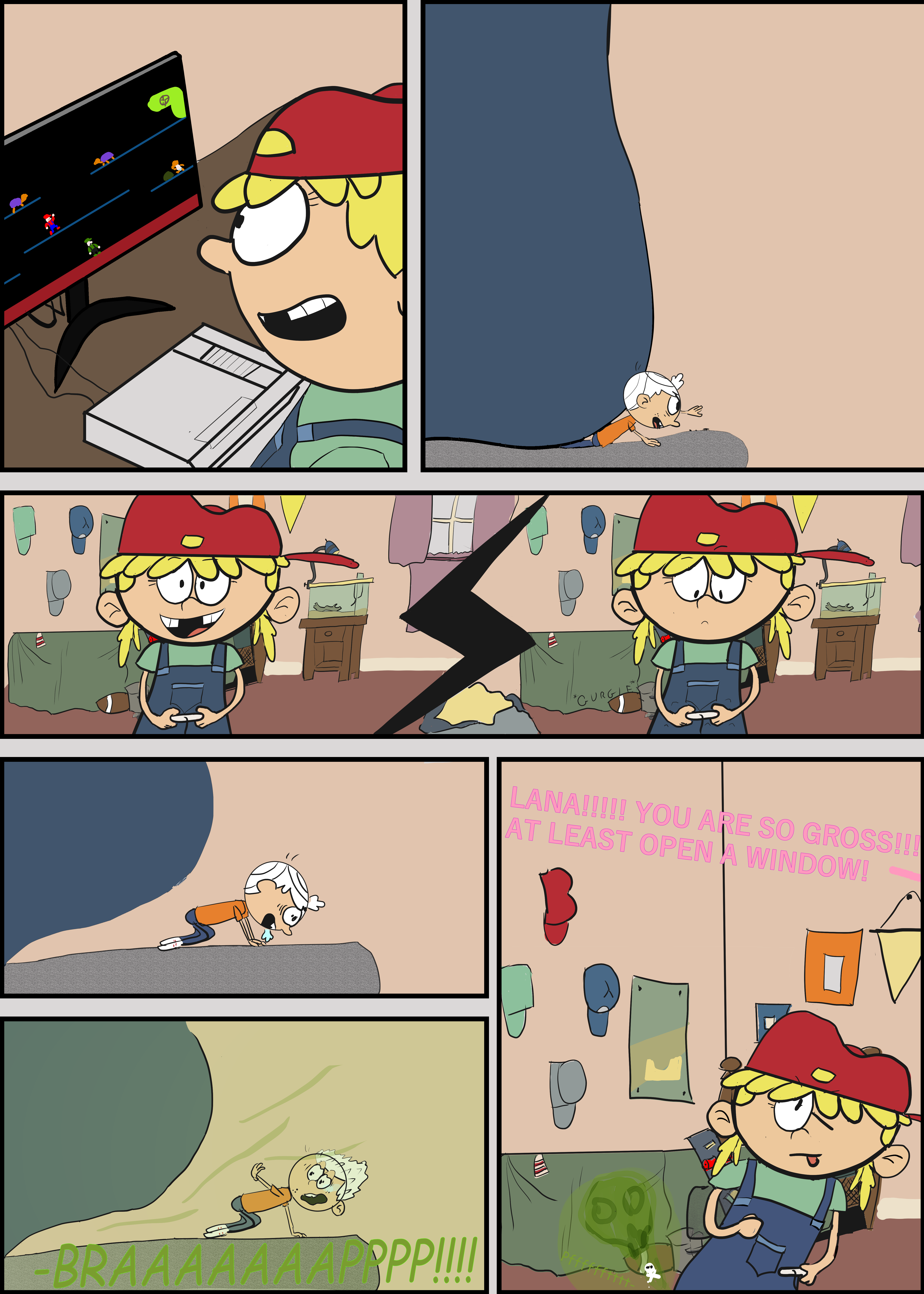 Now officially worst artist because I did a fart drawing. XDJoking aside, I decided to draw Lynn doing another "dutch oven" based on the episode "Space Invaders", but instead by eating meatball subs to add in the flavor. Lincoln of course does not like it.