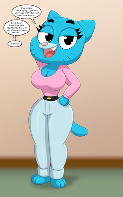 Based on Gumball's song in "The Money" Yes, I had to.ยFor those who haven't seen it, that's him "imaginated" as a 18-year-old girl. XD
