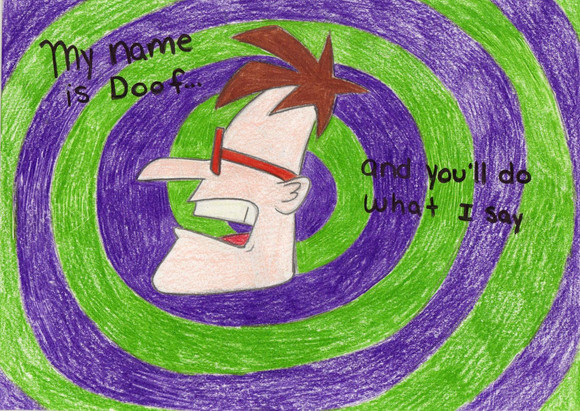I know I made something like this before, but I just wanted to do a crazier unique style. I drew some things in the background (Phineas and that squirrel head) to symbolize her insanity a bit......enjoy, and Happy Thanksgiving!