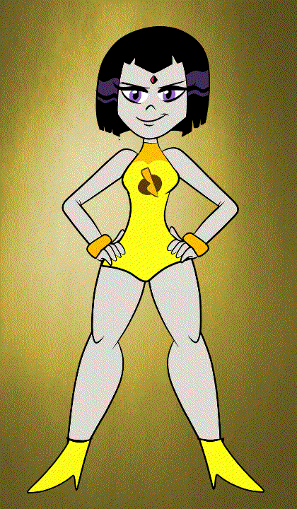 Very fine job! Lady Legasus--ie Raven: the most "curvaceous" of the Titans! WHAT would anyone say if I wrote "Starfire is just a bit too skinny," compared to this image: the TRUE Raven, but somehow the robed Raven manages to hide. Except for the Halloween episode of "Teen Titans Go!" I saw recently, I haven't seen Raven happier than as Lady Legasus! Why must she hide herself? Even her face is half-hidden by her pretty but ever-present robe.