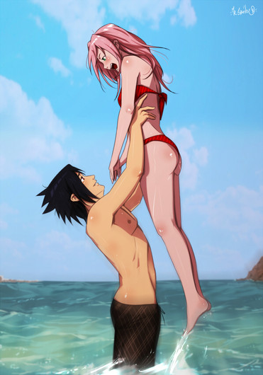 Classic, Naruto is about to fall flat on his face, sSakura is chasing after Sasuke, and Sasuke takes the spotlight.