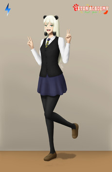 Meimei | Freshman: A high school therian student with a Giant Panda trait who just recently grown into popularity for her Let's Play videos she became inspired of. Found as an orphan, she was raised by a female human, becoming her caretaker in a panda facility she works at. Throughout many years, she was homeschooled, had scheduled TV and internet, and was treated like how every parent should care for their child. Now and then, she would communicate with other Pandas and even made a close bond with a Red Panda, named Fonfon, becoming her pet within the facility. Over time, sheβd grown into a fascination with video games and LP videos she watched on YouTube, which made her caretaker reward her a game console. Meimei's inspiration would later led her to rise in popularity on the internet. However, it isn't widely known to certain countries even where she's about to attend to: Seton Academy.Seton Academy and it's characters belongs to it's original creator, Bungo Yamashita.