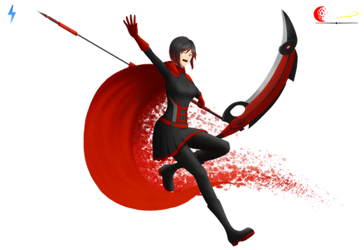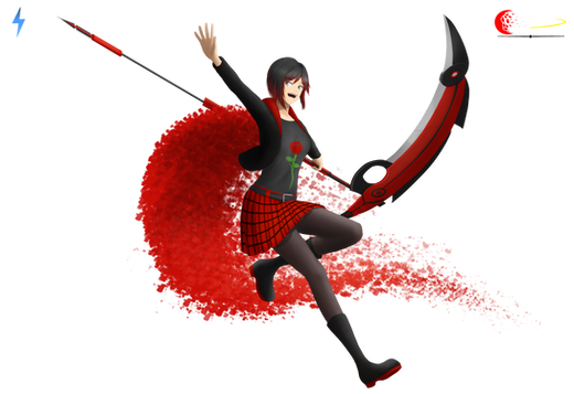 Ruby Rose's semblance, Petal Burst, gives her a boost of speed causing her to slice through multiple enemies (ineffective to tough enemies and some bosses) and enables her to glide mid-air.