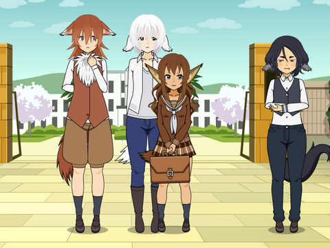 Ranka Okami: A high school therian student with an Ezo Wolf trait who is Hitomi's close friend since sixth grade. Ranka and her family had adopt the Ainu culture by their ancestors and has been living near the mountains far from human contact due to it's new chief having radical views against humans. Because of this, she doesn't know much about the outside world until she enrolled at Seton Acadeny and met Hitomi, yet she's still learning more to this day. She's optimistic and has gain trust with humans, including her parents, while her older sister, Ferryl, and their chief believes that humans have caused a negative impact on them. After having a heated argument between her sister and the chief, Ranka and her parents were exiled from their homes while Ferryl stayed behind.