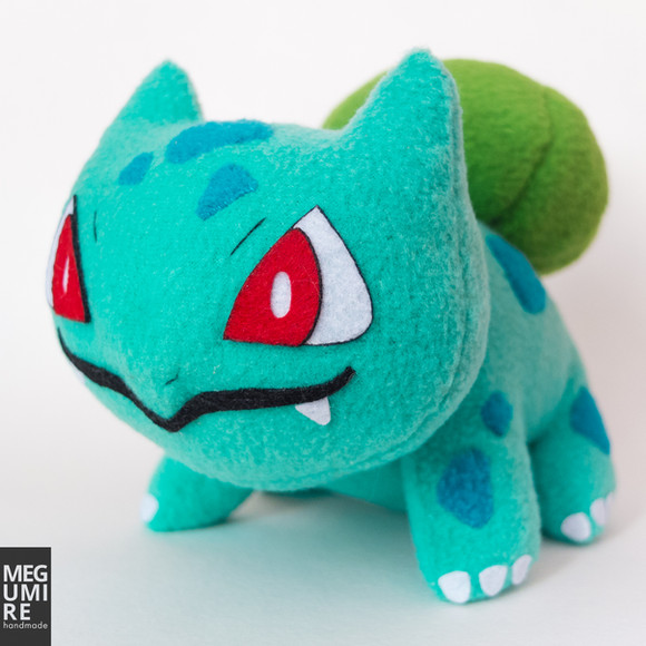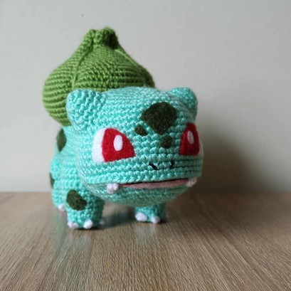 The grass starter from the Generation I Pokémon.Made with acrylic yarn, plastic buttons, felt, thread and polyester stuffing.