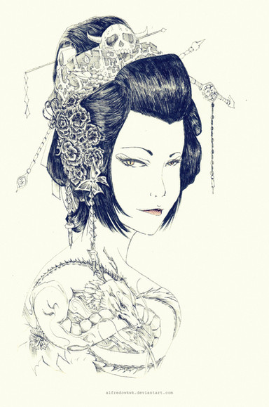 #astrology #cancer #cinquefoil #coloredpencil #crab #drawing #geisha #inkpen #traditional #zodiac
