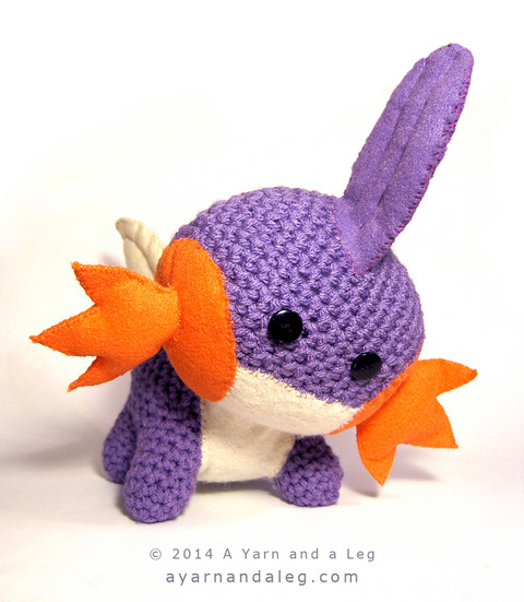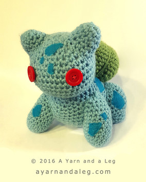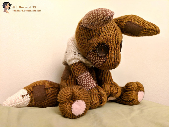 Made with acrylic yarn, plastic buttons, felt, thread and polyester stuffing.Approximately 16" x 10" x 11" (41 x 25 x 28 cm).