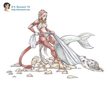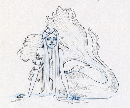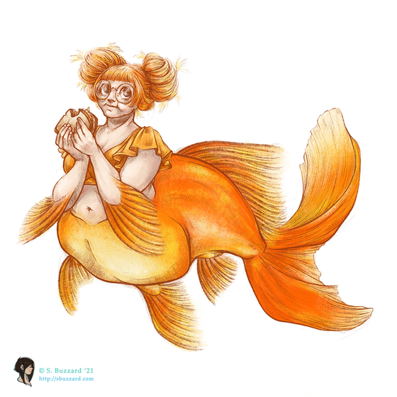 Redesign of my koi mermaid:This was by far the most popular mermaid type I’ve done so far, but I can still see a lot of issues with the final painting. I think she’s less stiff and more visually engaging in this new version.