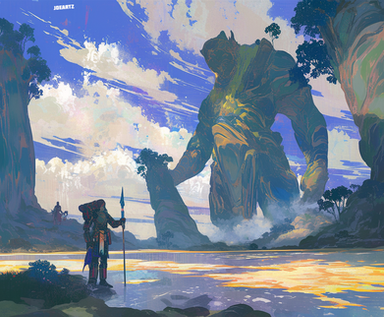 #digitalart #digitalpainting #mage #rpgart #fantasyart #golem #scenery #sorceress #shamangirl