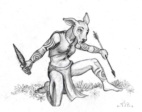 #anthro #anthropomorphic #bovid #furry #gazelle #hooved #hooves #running #skirt #spear #ungulate #zeta