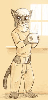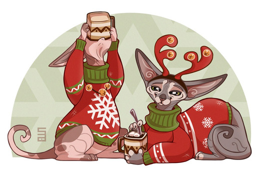 Gold tier Patreon pledge reward for my friend, L-James ! L is super chill and asked for art of my own character, Hester. She's a librarian sphynx cat who loves coffee and warm clothes.