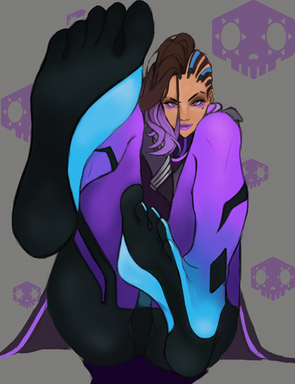 Great stuff. Sombra is my favorite girl from Overwatch. And her feet look great tin this pic. Nice psoe and expression, too. Looks like she is up to something again.