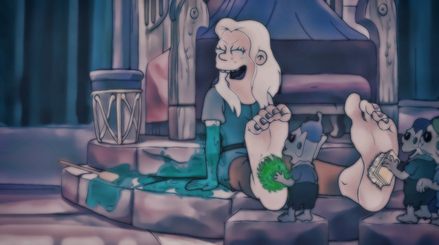 "See, Bean?. Aren'tcha glad I talked ya into doing this? I'm sorry, I can't understand ya over the laughing. I'll take that as approval!"Done after watching Disenchantment on Netflix. Matt Groening's new show about a trio of fantasy types who form an unlikely clique. I rarely pull the tickles out, but Princess Tiabeanie was worth one I think.