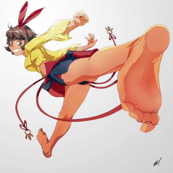 It was always a bit irritating that Sakura always wore shoes. I guess the nearest we had to seeing her feet was that pretty little summer dress costume in Street Fighter 4. May I ask what concept art you based this on?