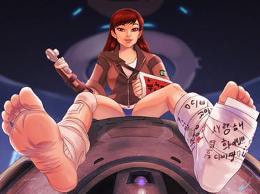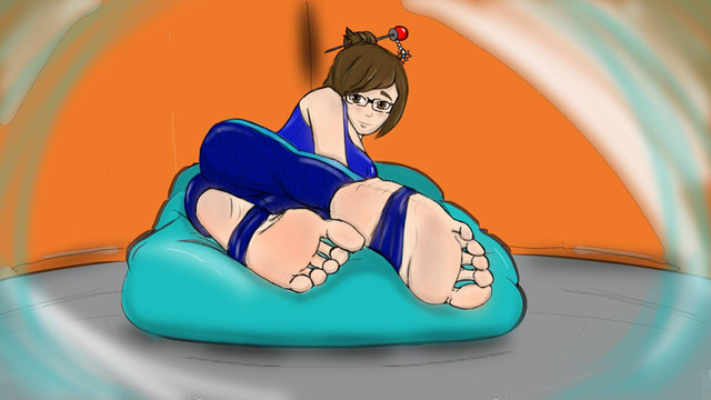 The one thing about this drawing I don't like is the figure, Mei is pretty much canon chubby or outright fat. While I do love your ridiculously-HD foot pics, it'd be nice to see varied body types and stuff when it applies, or just for something different with a particular character. I know the focus of your art is the feetsies but that's just something this pic made me think about.