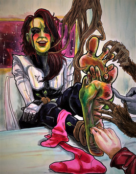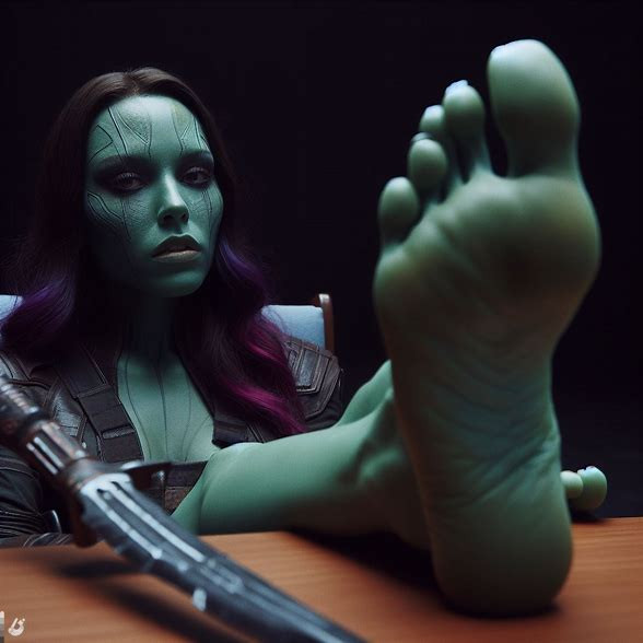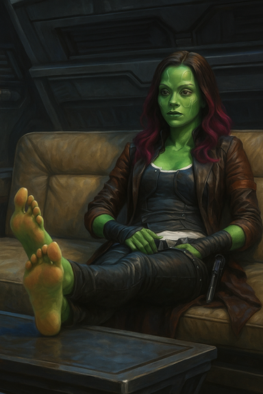 Very well done, the best barefoot Gamora picture out there thus far. What would have made this even more perfect is if it had her boots (and socks I presume) sitting on the ground next to her chair.