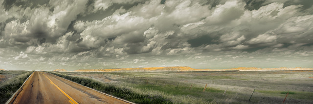 The CLOUDS are amazing, and the yellow lines lead the eye to the horizon. Gorgeous!