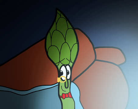 The background is rather sad, but I didn't want to leave it white. Despite the fact that Archibald is the most amazing asparagus ever, I'm not willing to expend a lot of energy on making his background look brilliant.