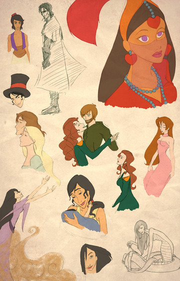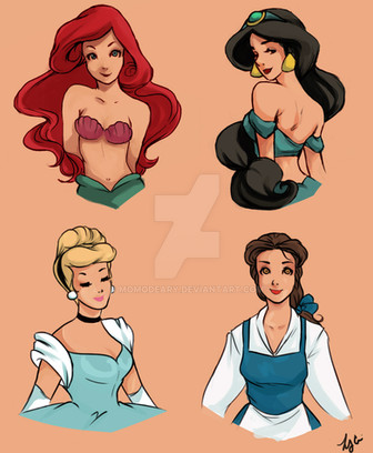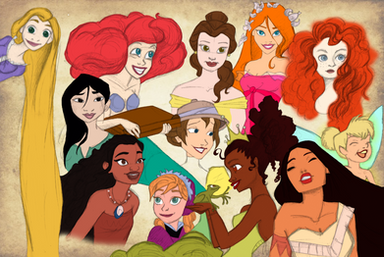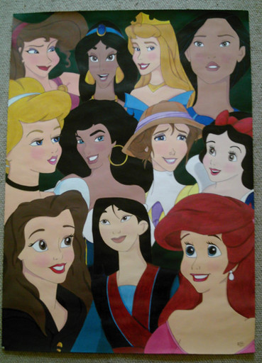 I've wanted to do this for a while...the idea is based off an image of Sailor Moon I use to have. But unfortunately, that was like, 10 years ago, and I can't find it anymore.Anyhoo...I quite like how this turned out, if I may say so. And I have been on a princess-drawing rampage lately, and I might try to do a follow-up to this with other Disney gals. Meh, who knows?