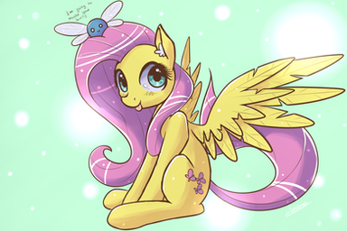 Fluttershy: the calm butterfly Pokemon. Fluttershy tends to tuck herself inside her mane feeling nervous. But she tends to be very defensive when protecting herself or her trainer.