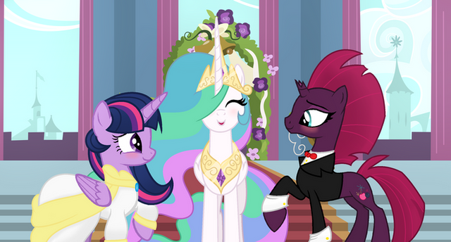 it was all going so well, but then then Celestia called Tempest the groom, Celestia does apologise, but it's too lat, Rarity's friends wedding was ruined, and to make things worse, Twilight and Tempest won't do a do over, saying their happy so they don't mind, it's like they don't care about the wedding, and only did it to be togetherΒ X3