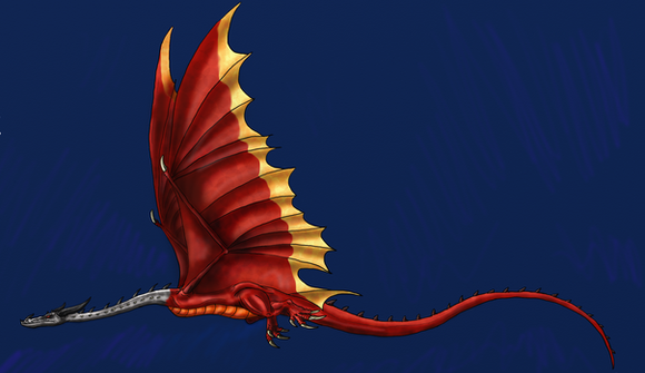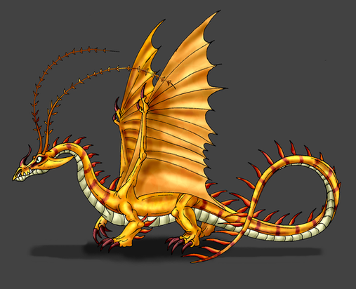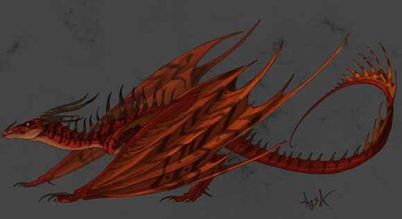 honestly my favorite dragon of the bunch. the razor wing bit really tickles me because, as far as i can tell, TOTALLY original. never heard that one before with any dragon mythos.